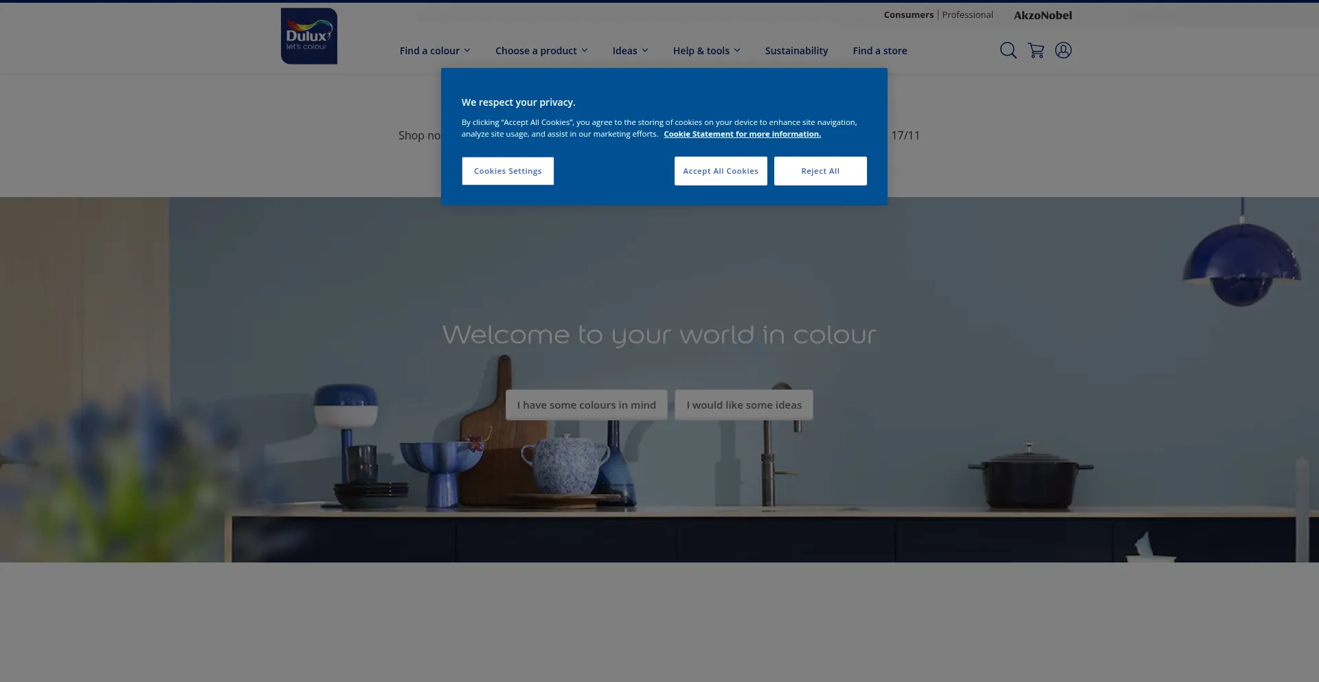 该网站实现符合GDPR或CCPA等隐私法规的cookie同意机制。这表明 dulux.com 遵守数据保护标准并为用户提供对个人数据收集实践的控制。