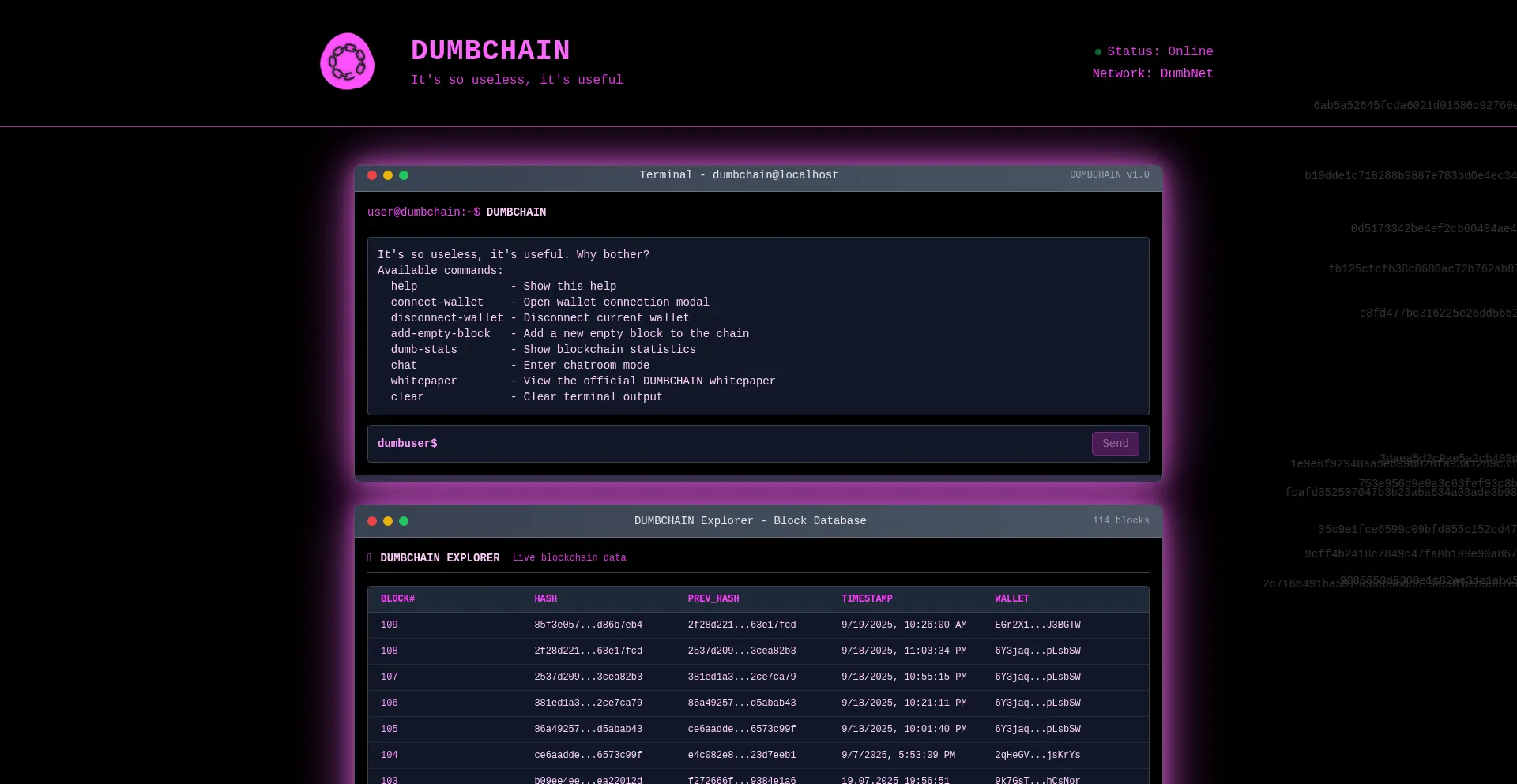 Dumbchain - It's so useless, it's useful. The most pointless blockchain ever built. No vision. No future. Why bother?