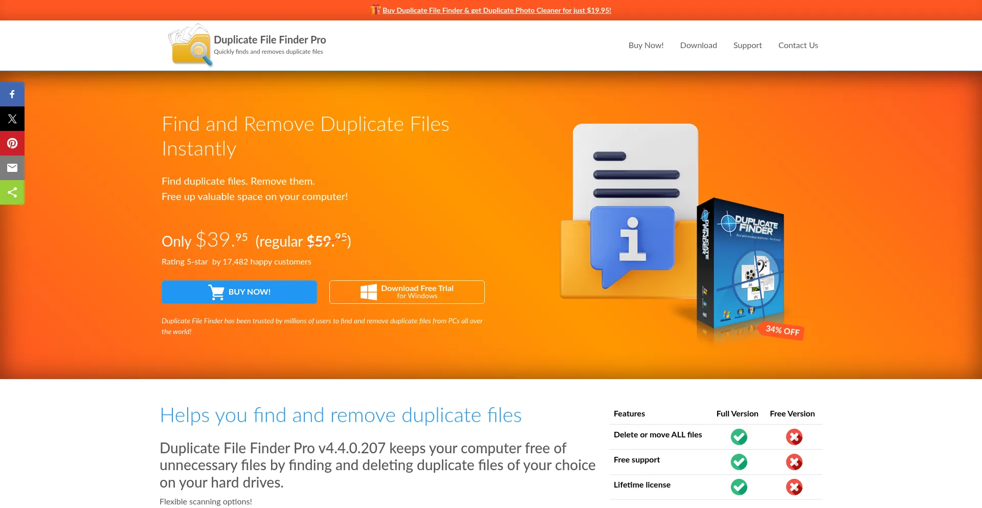 帮助保护他人,快在社交媒体上分享此页面吧!知道duplicate-file-finder.com的人越多,骗子就越难得逞。 通过在社交媒体上分享此页面,帮助更多人发现可靠的duplicate-file-finder.com吧!