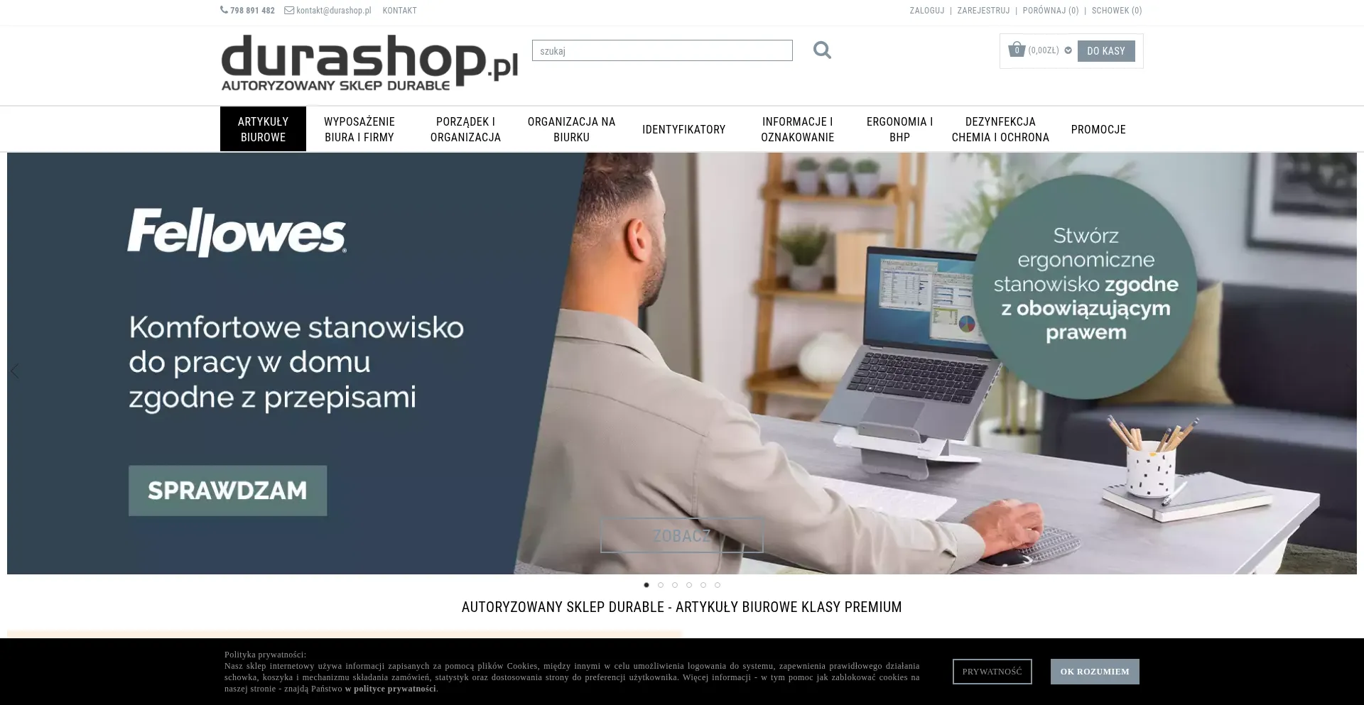 Durashop.pl - autoryzowany sklep internetowy Durable - najwyższej klasy artykuły biurowe do wyposażenia firmy ✔️ Szeroka oferta i atrakcyjne ceny!