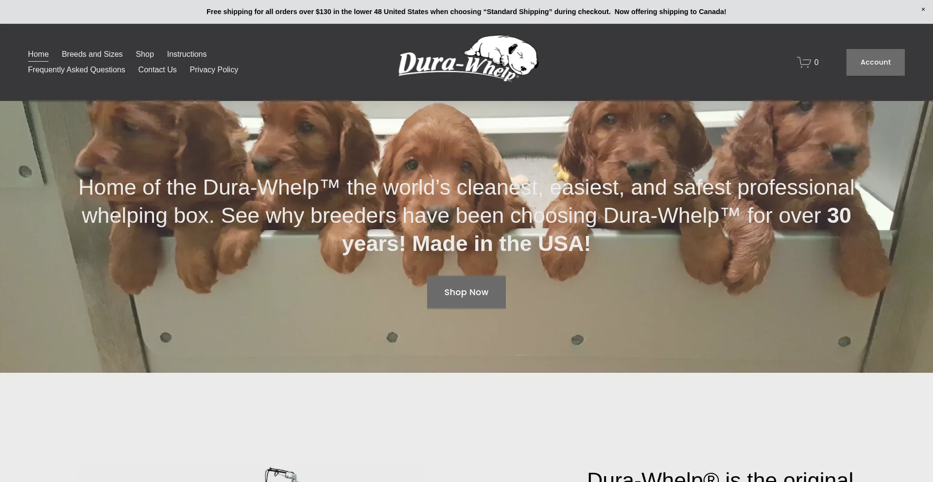 The Dura-Whelp® whelping box is the cleanest, easiest and safest professional whelping box on the market. It features a solid floor, fully suspended puppy rails and it sets u...