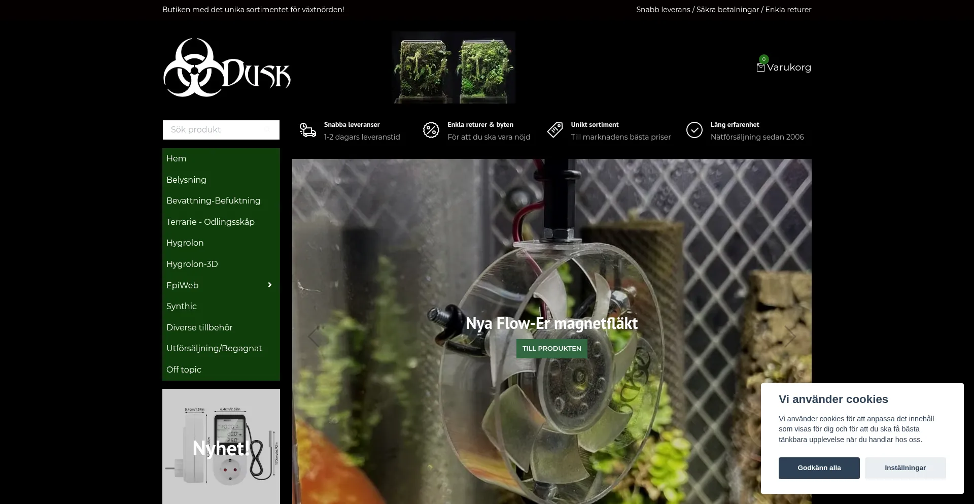 分析表明 dusk.se 作为电子商务平台运营,促进商品或服务的在线交易。该网站实现了购物车功能、支付处理系统和产品目录功能,这些是商业零售运营的典型特征。