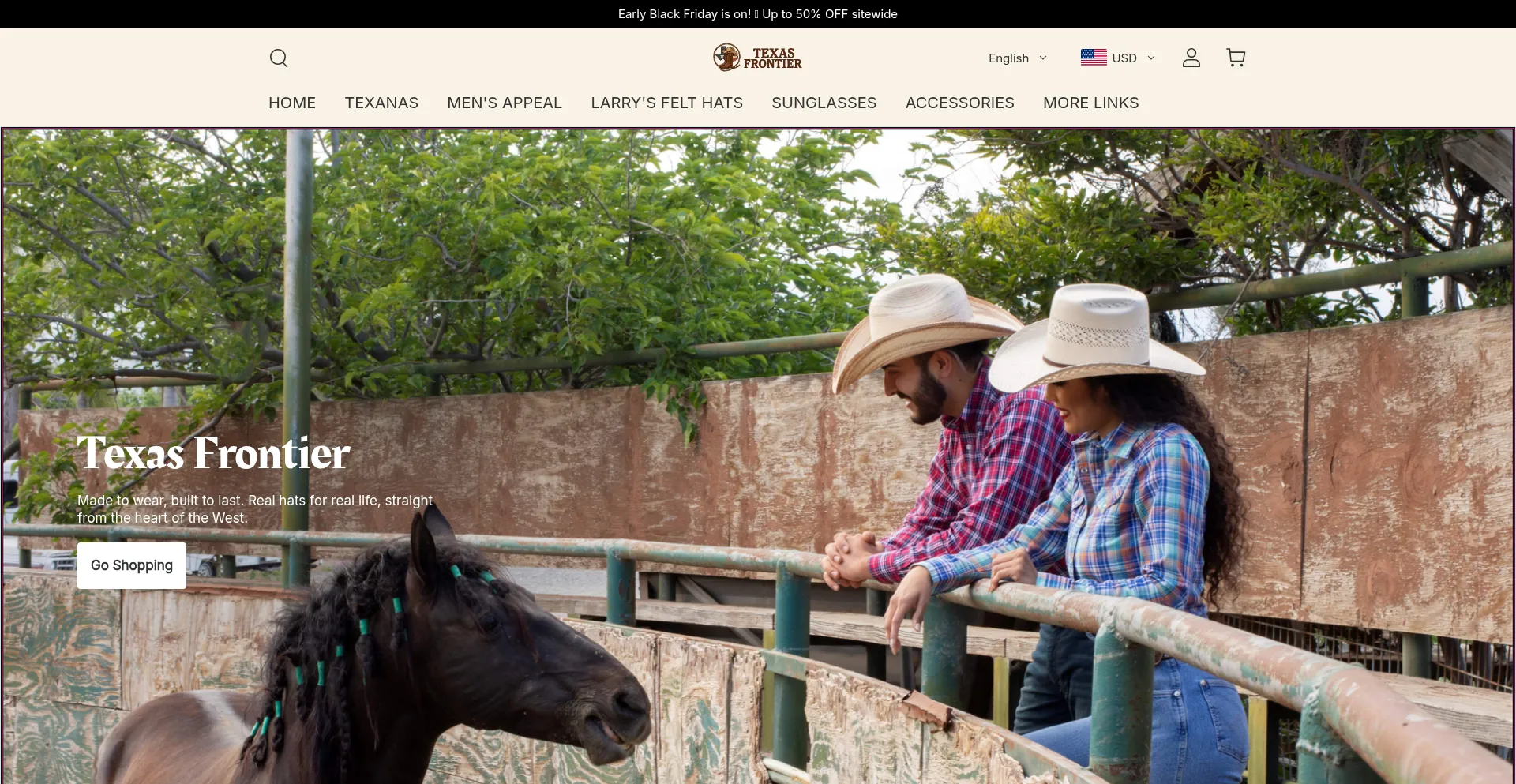 Authentic Western wear for Mexican & American cowboy style. Sombreros texanos, vaquero jeans, and ranch-style clothing. Fast U.S. shipping.