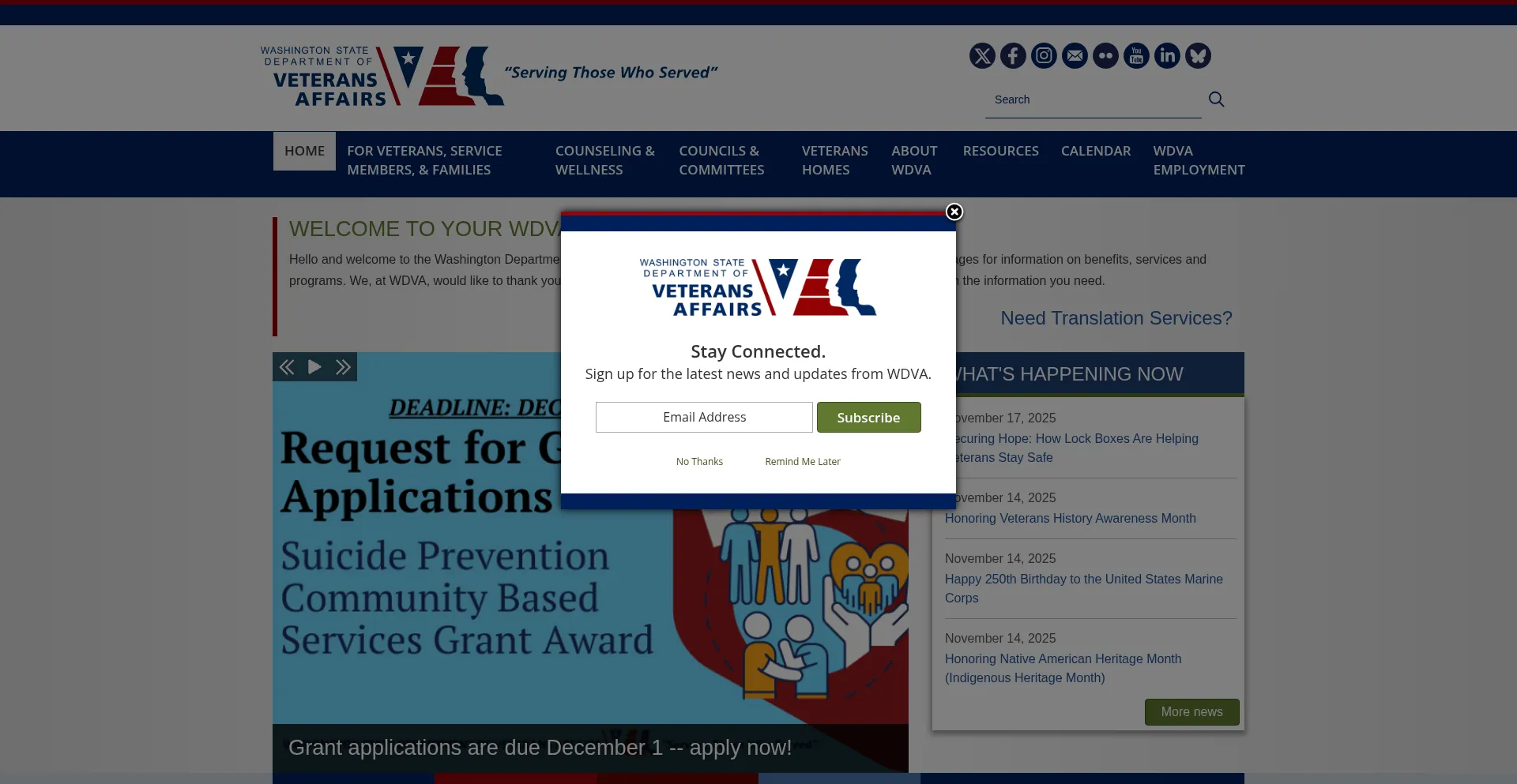 Hello and welcome to the Washington Department of Veterans Affairs website.