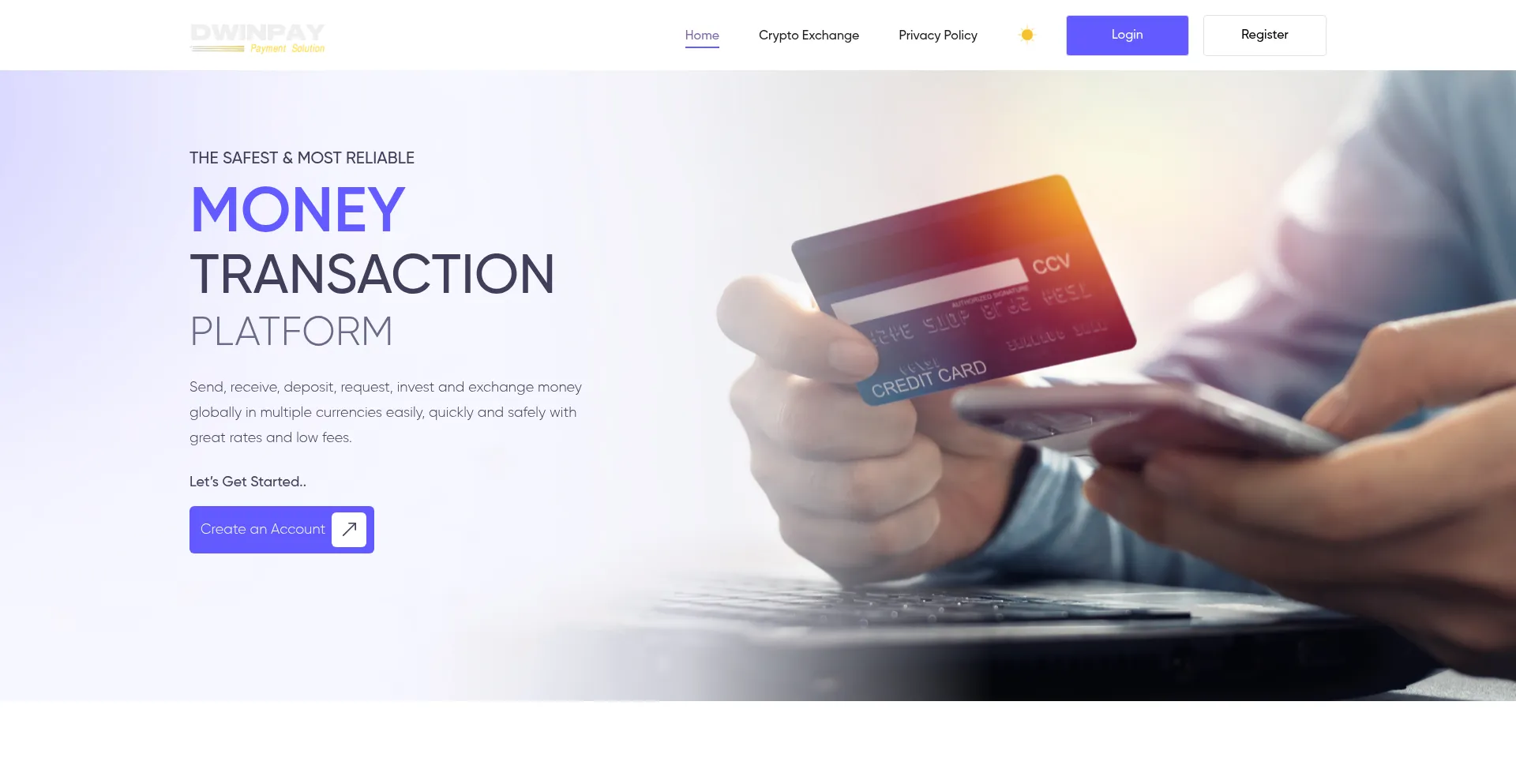 dwinpayment.com 使用 Bootstrap,这是一个广泛采用的开源响应式网页开发框架。Bootstrap 通过标准化组件和样式实现移动友好界面的高效创建。