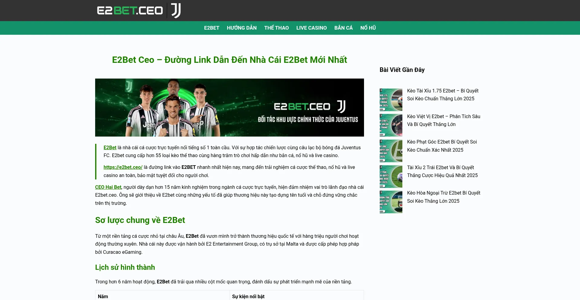 E2Bet là nhà cái cá cược quốc tế uy tín, hợp tác cùng Juventus FC, sở hữu hàng trăm trò chơi, bảo mật cao, giao dịch nhanh chóng và dịch vụ 2...
