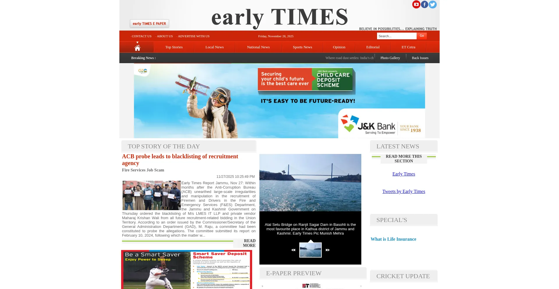 Early Times: Leading Newspaper Jammu Kashmir, Latest News about Jammu & Kashmir