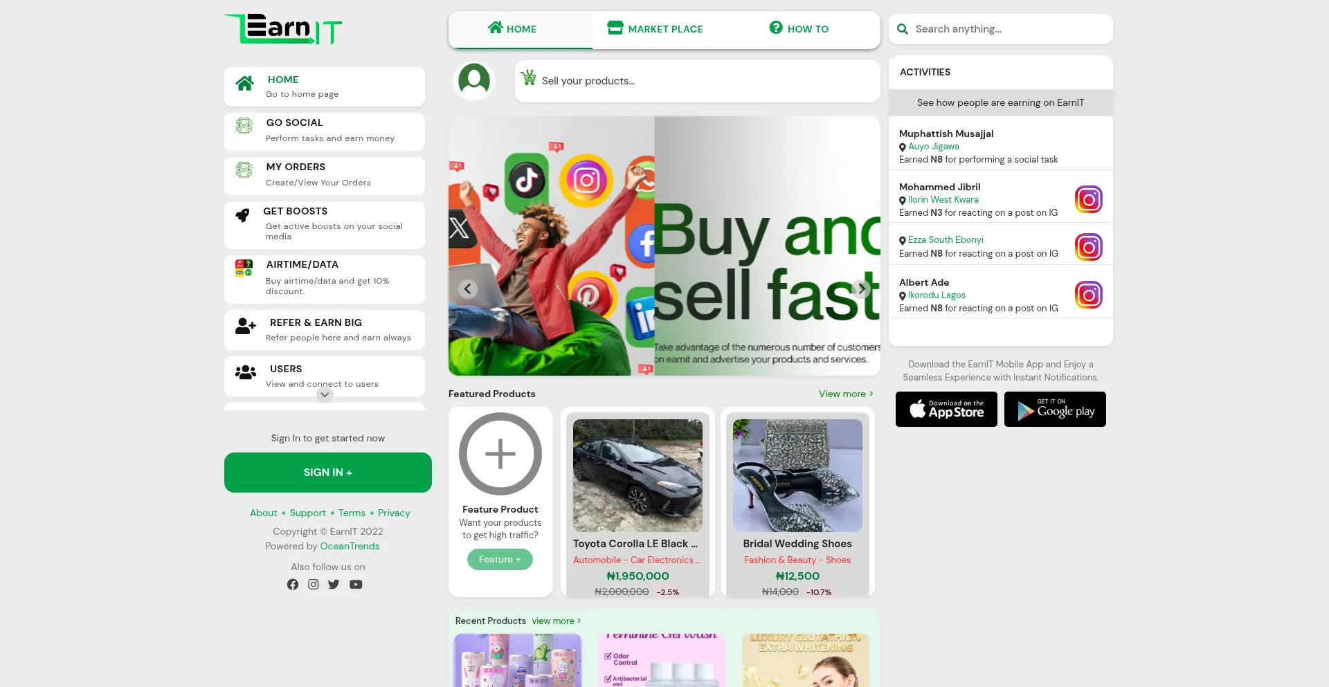 earnit.ng 提供 Android 设备移动应用程序,表明平台存在已扩展到网络服务之外。