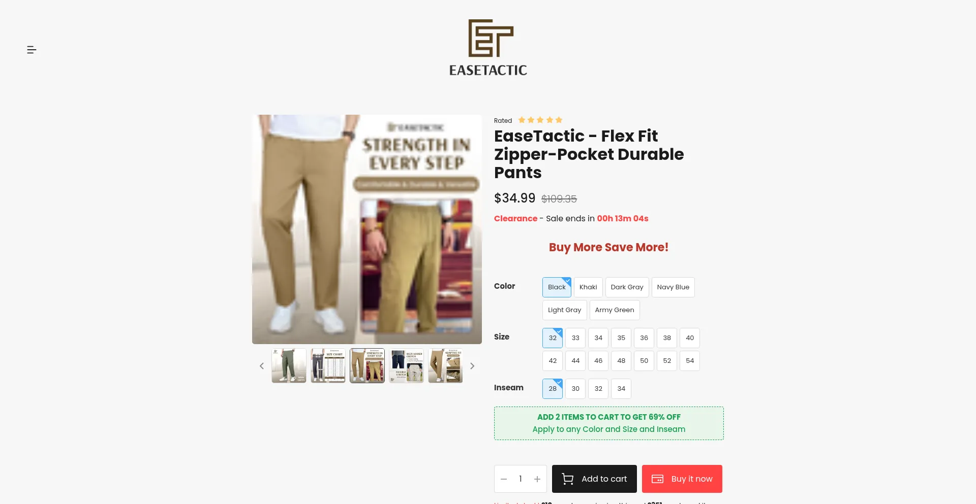 EaseTactic - Flex Fit Zipper-Pocket Durable Pants