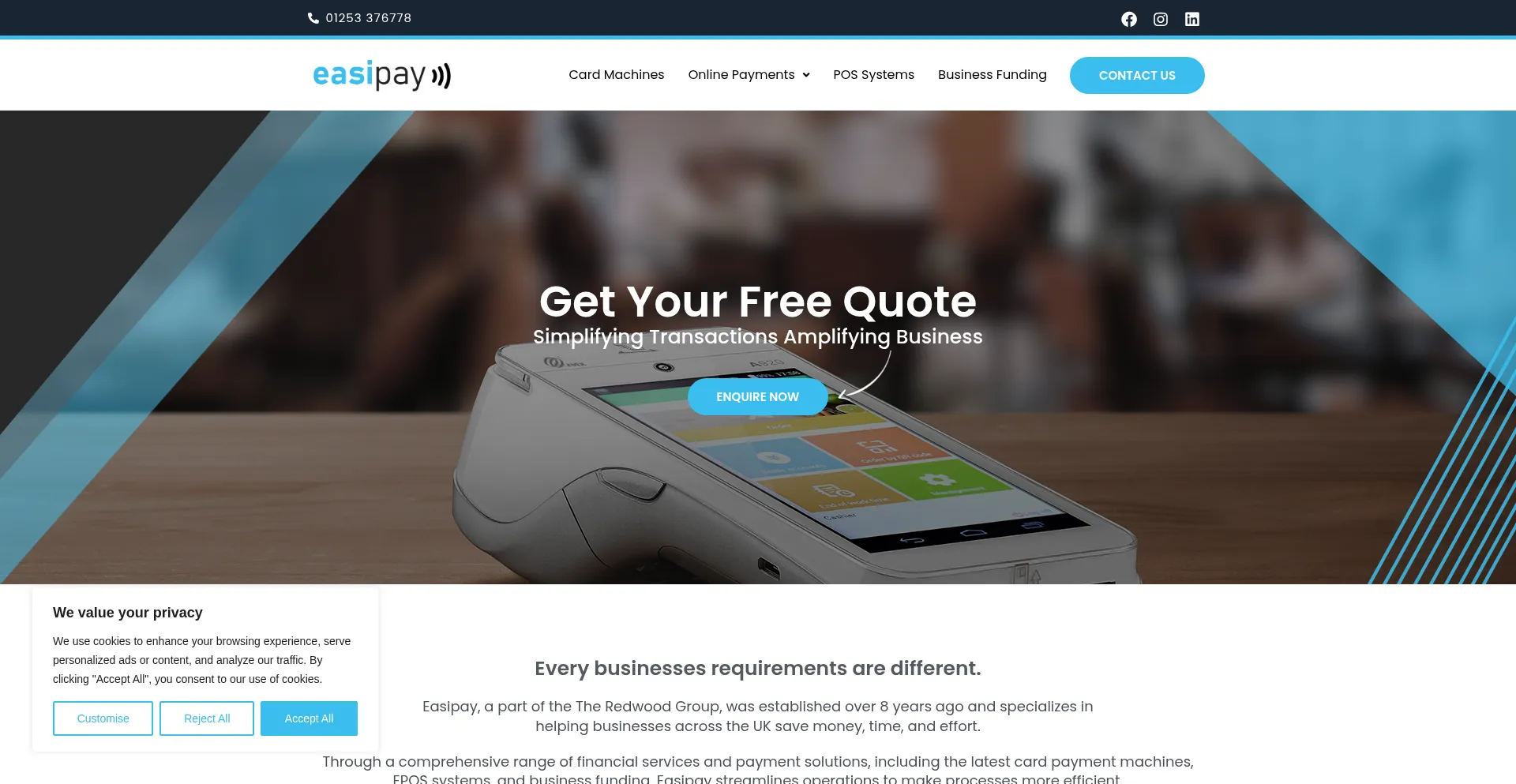 该网站实现符合GDPR或CCPA等隐私法规的cookie同意机制。这表明 easi-pay.co.uk 遵守数据保护标准并为用户提供对个人数据收集实践的控制。