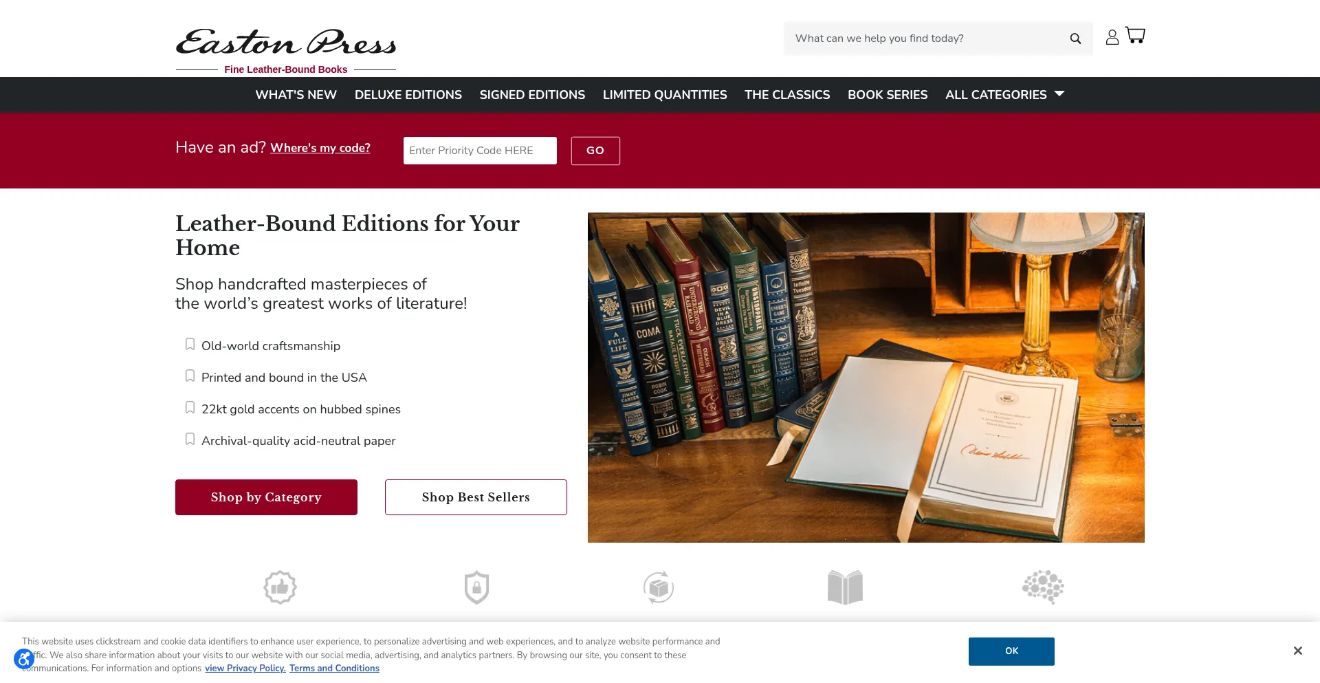 该网站实现符合GDPR或CCPA等隐私法规的cookie同意机制。这表明 eastonpress.com 遵守数据保护标准并为用户提供对个人数据收集实践的控制。