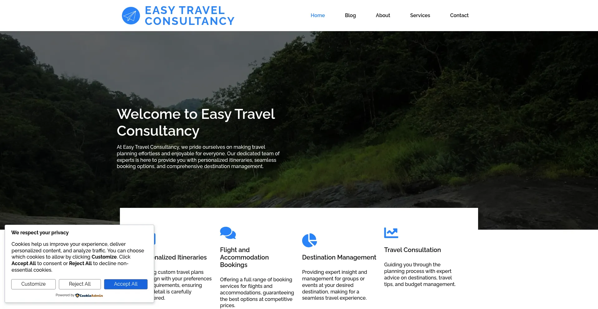 该网站实现符合GDPR或CCPA等隐私法规的cookie同意机制。这表明 easytravelsconsultancy.com 遵守数据保护标准并为用户提供对个人数据收集实践的控制。