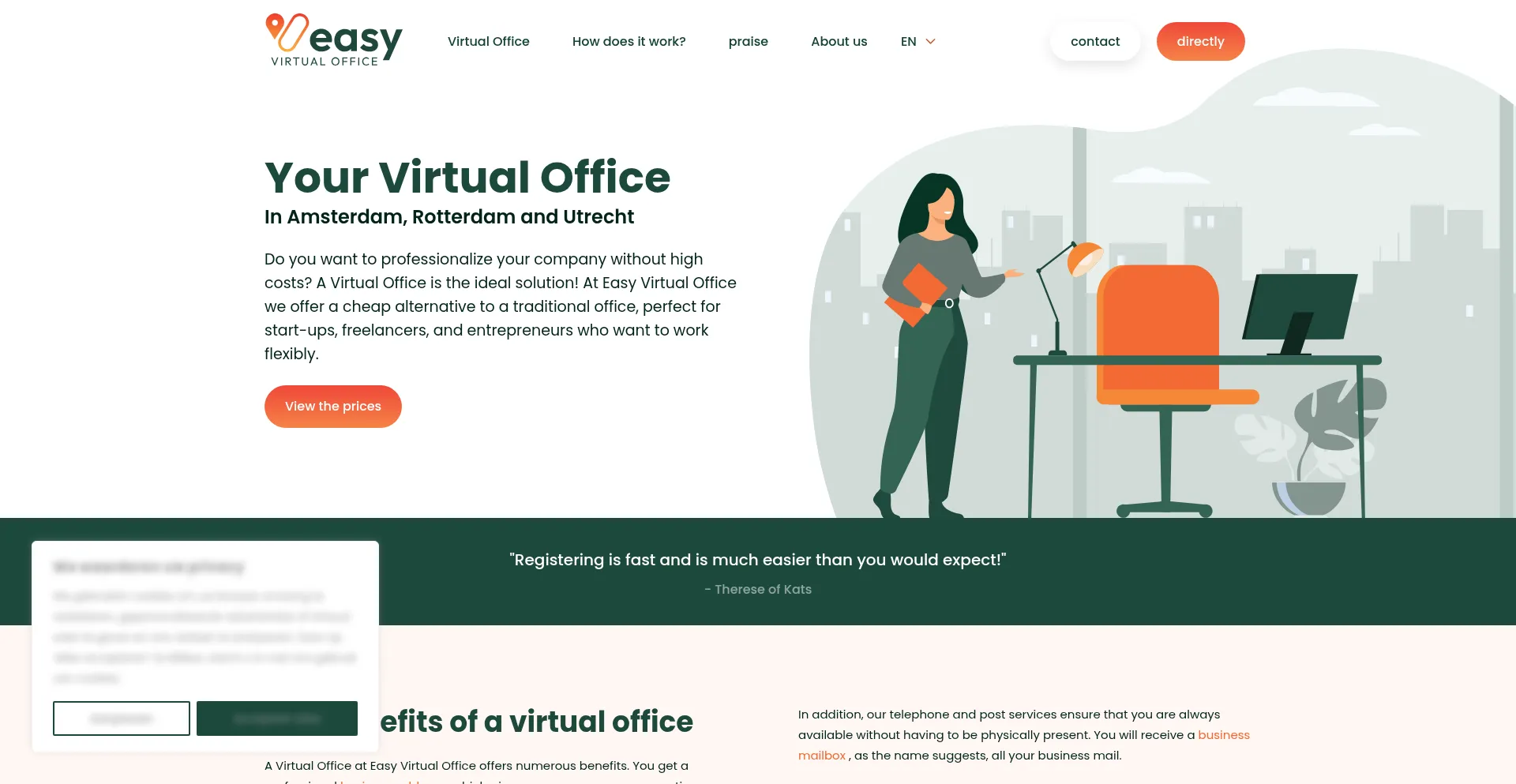 该网站实现符合GDPR或CCPA等隐私法规的cookie同意机制。这表明 easyvirtualoffice.nl 遵守数据保护标准并为用户提供对个人数据收集实践的控制。