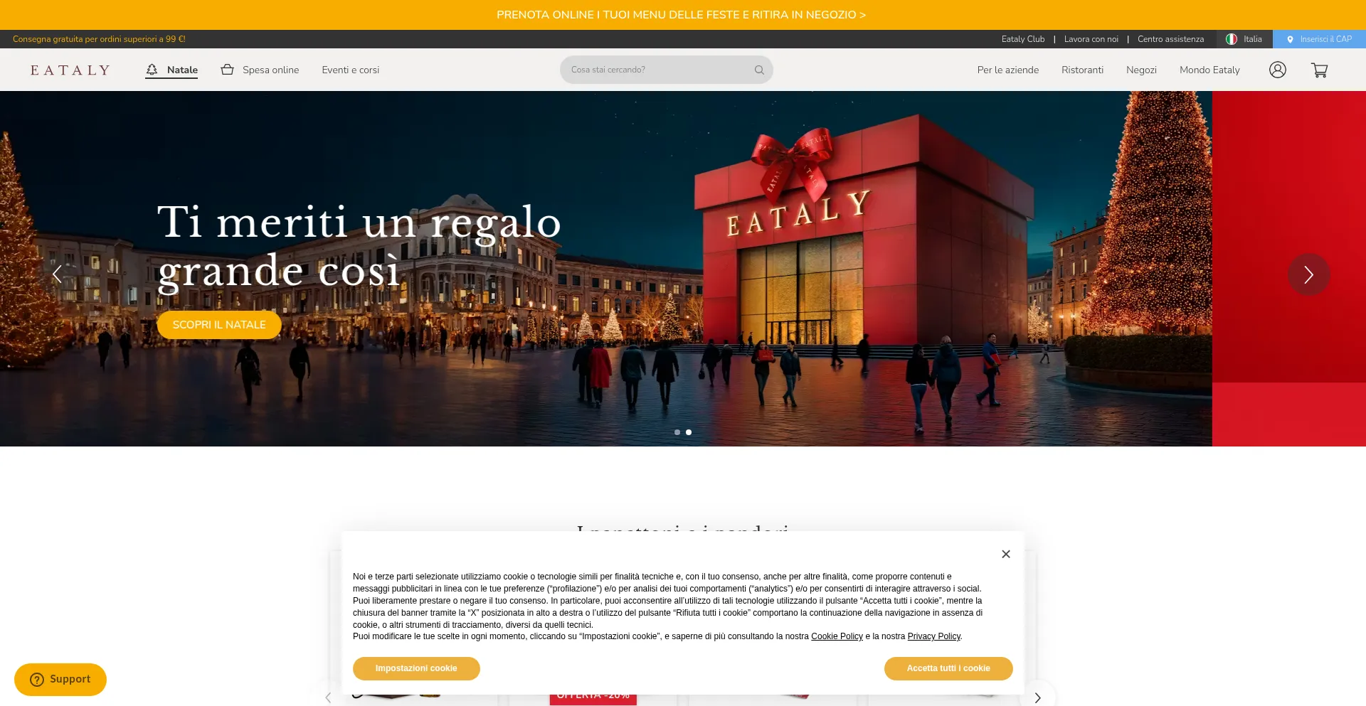 该网站实现符合GDPR或CCPA等隐私法规的cookie同意机制。这表明 eataly.net 遵守数据保护标准并为用户提供对个人数据收集实践的控制。