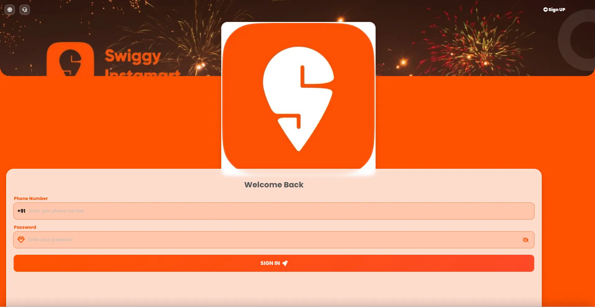 该网站实现数据收集表单,请求个人信息,包括姓名、电子邮件地址、电话号码或其他敏感详细信息。用户应验证 eatsswiggy.com 的合法性并在提交个人数据前查看隐私政策。