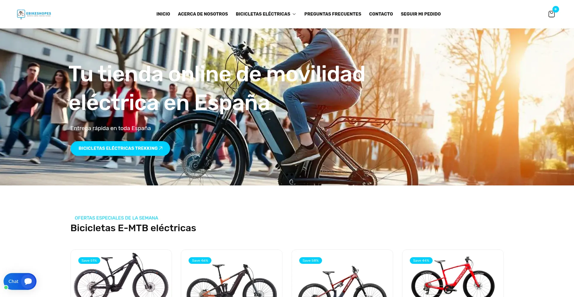 Tienda online especializada en bicicletas eléctricas, patinetes y accesorios. Envíos rápidos en toda España, garantía de 2 años y atención personalizada.