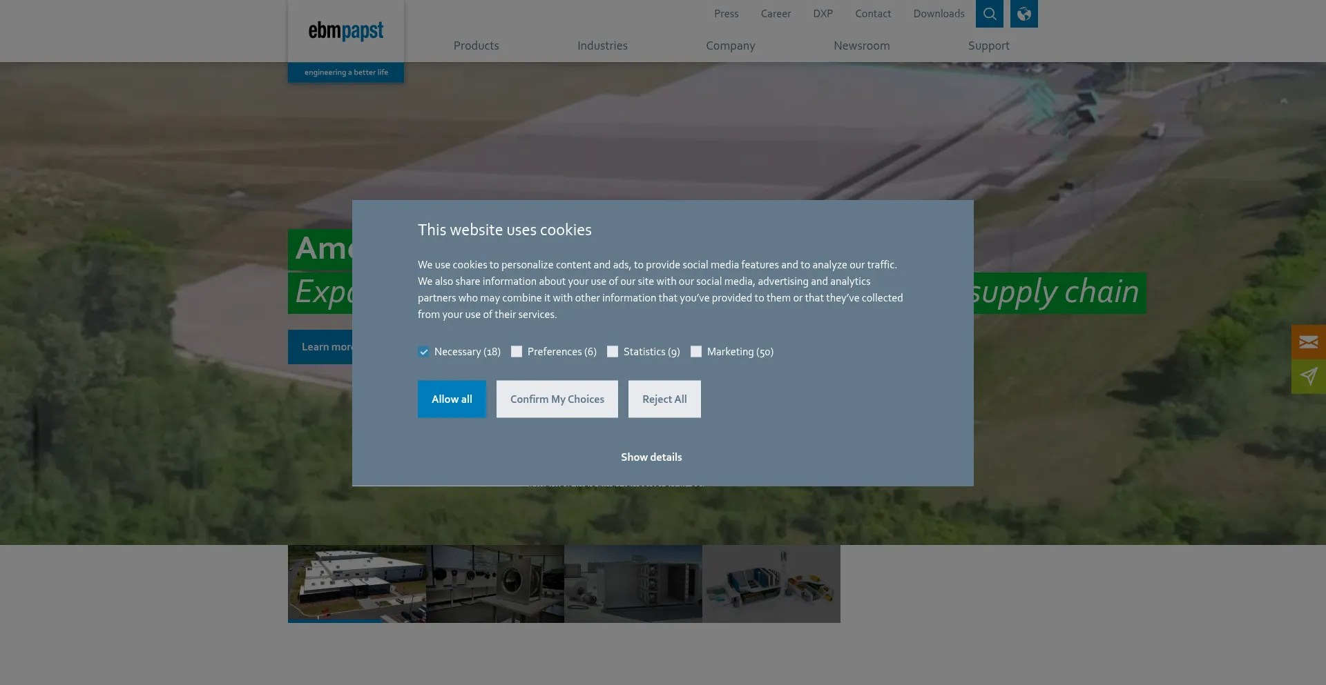 该网站实现符合GDPR或CCPA等隐私法规的cookie同意机制。这表明 ebmpapst.com 遵守数据保护标准并为用户提供对个人数据收集实践的控制。