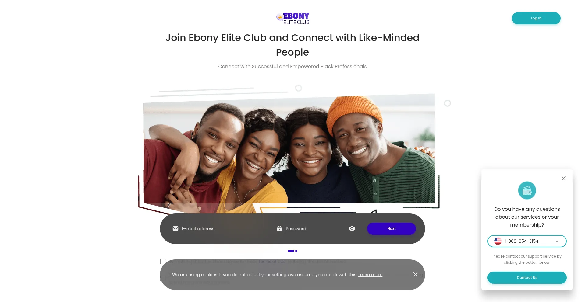 该网站实现数据收集表单,请求个人信息,包括姓名、电子邮件地址、电话号码或其他敏感详细信息。用户应验证 ebonyeliteclub.com 的合法性并在提交个人数据前查看隐私政策。