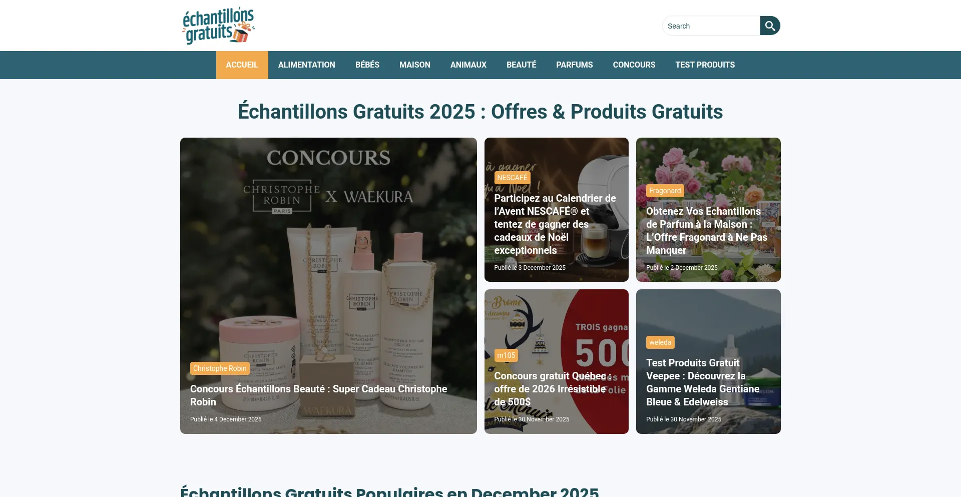 Découvrez les meilleurs échantillons gratuits 2026 : offres, produits et cadeaux gratuits à recevoir en France et au Canada Québec . Sélection a chaque jour.