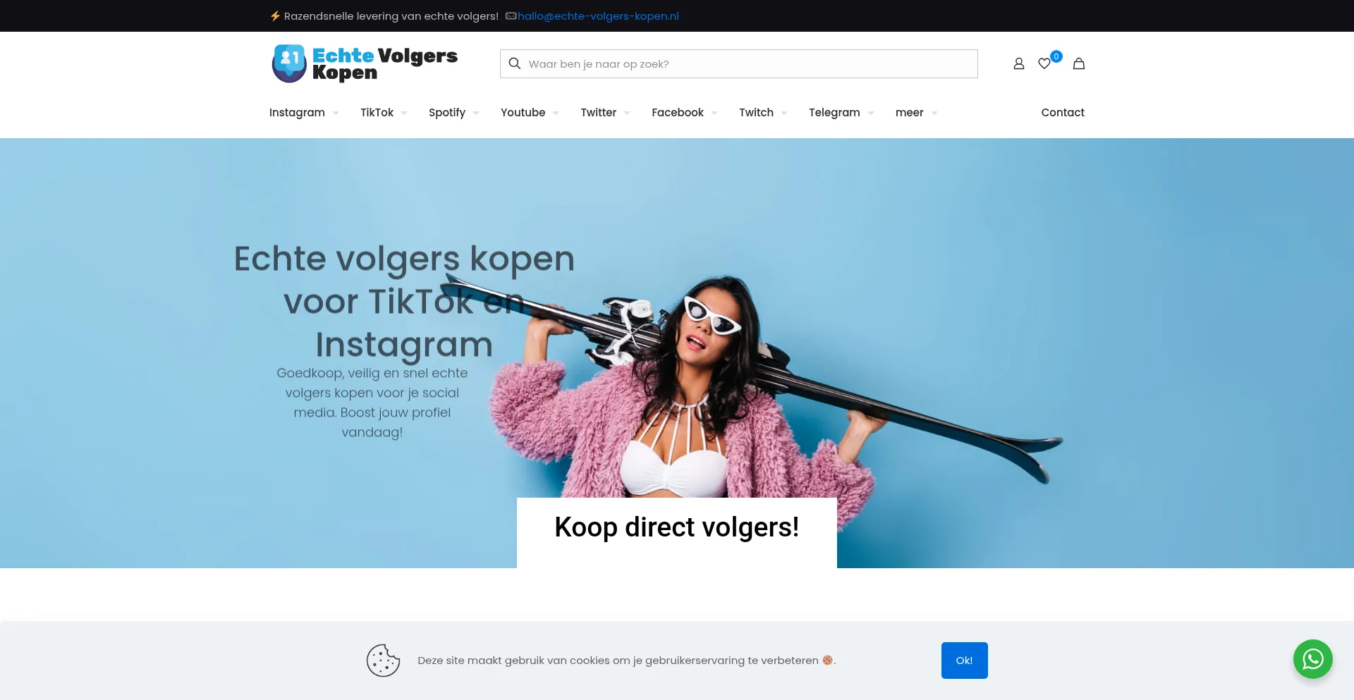 分析表明 echte-volgers-kopen.nl 作为电子商务平台运营,促进商品或服务的在线交易。该网站实现了购物车功能、支付处理系统和产品目录功能,这些是商业零售运营的典型特征。