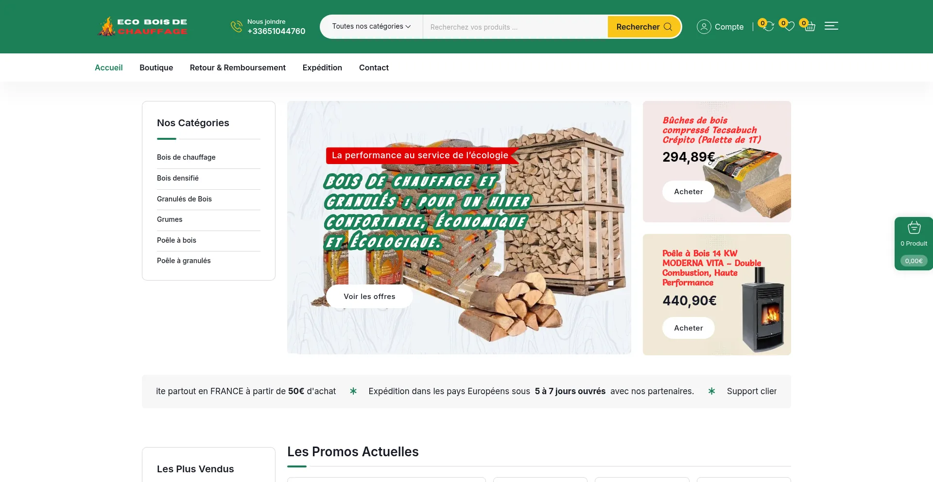 分析表明 ecoboisdechauffage.com 作为电子商务平台运营,促进商品或服务的在线交易。该网站实现了购物车功能、支付处理系统和产品目录功能,这些是商业零售运营的典型特征。