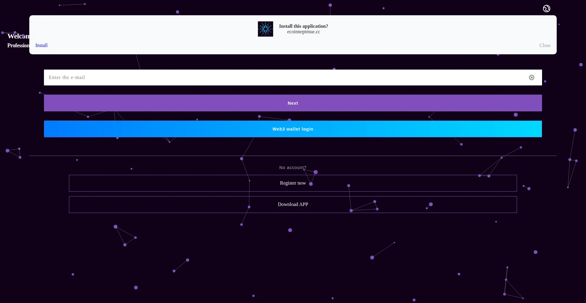 网站 ecoinneptmue.cc 被配置为一个带有移动应用功能的网络应用。用户可以直接将该网站安装到设备的桌面上,以快速访问并享受类似移动应用的体验。