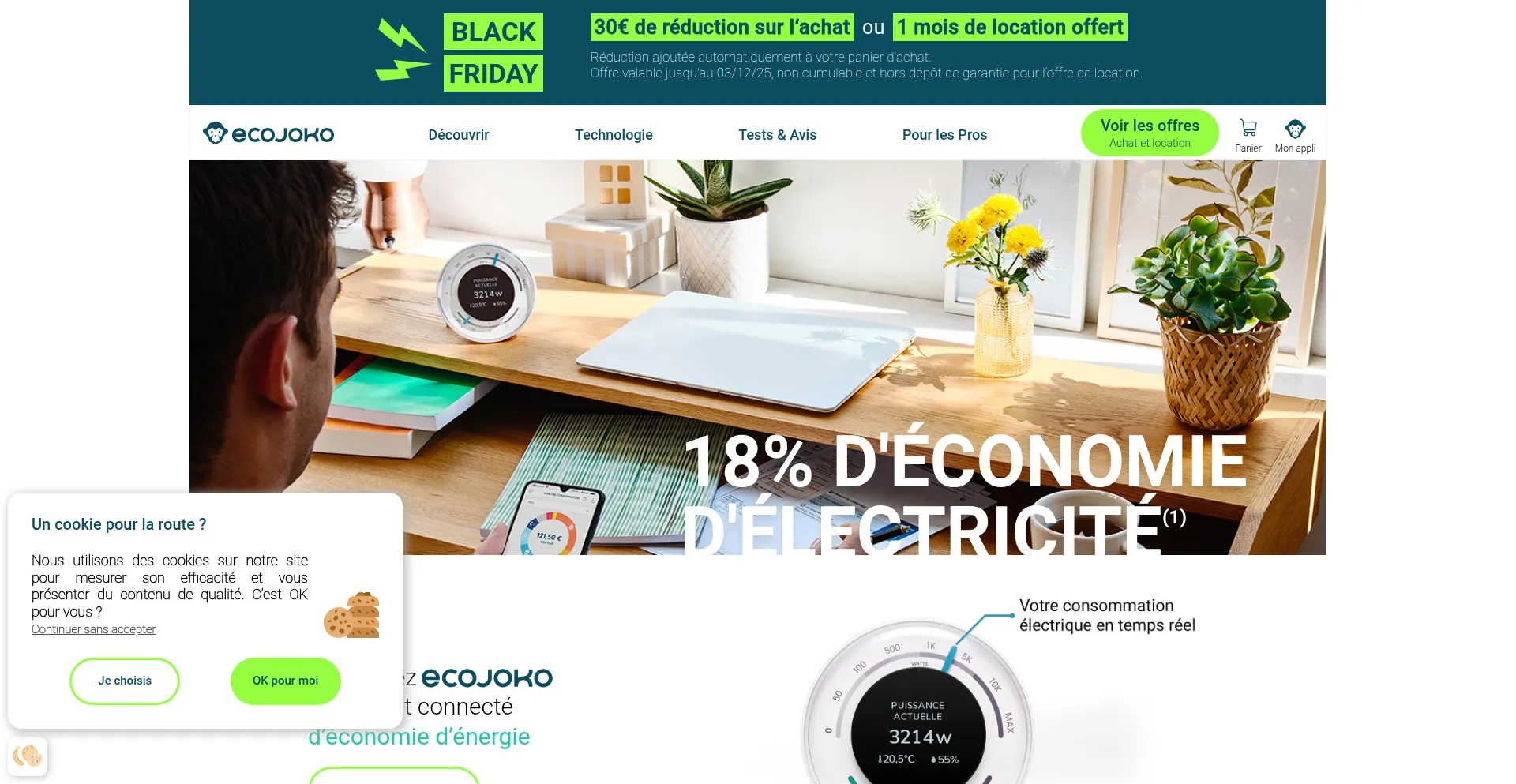 Découvrez ecojoko, l'assistant connecté d'économie d'énergie. Comprenez ce qui consomme chez vous et économisez 18% sur vos factures d'électricité !