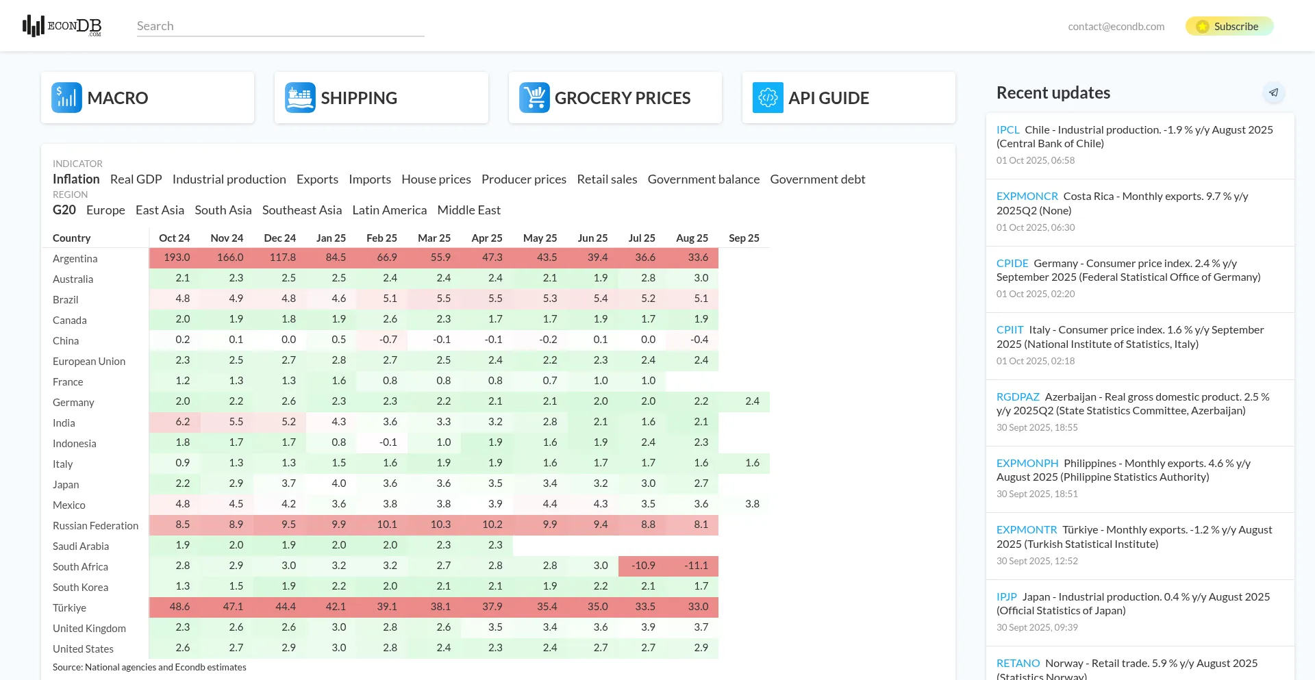 Econdb offers indicators of the container shipping market, macroeconomic data, and retail prices. Explore our platform, trusted by industry experts.