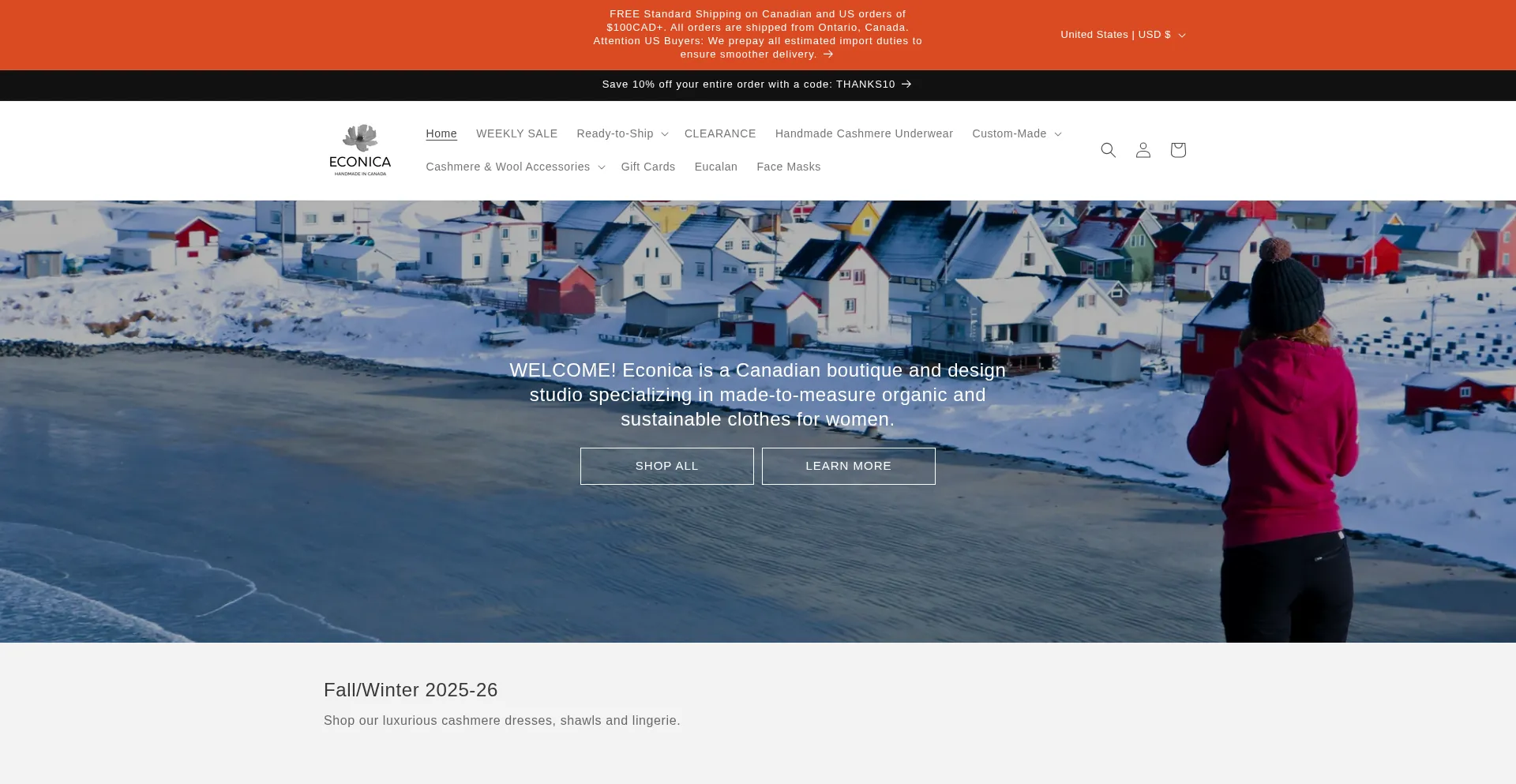 Discover Econica, a boutique for organic women’s clothing and natural underwear, proudly made in Canada. Explore our wool and linen clothes, summer scarves, and silk + cashmer...