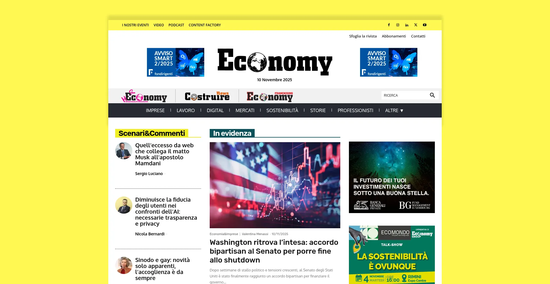 Economy online è il portale di notizie e analisi quotidiane di economia, di politica e di finanza in Italia e nel mondo.