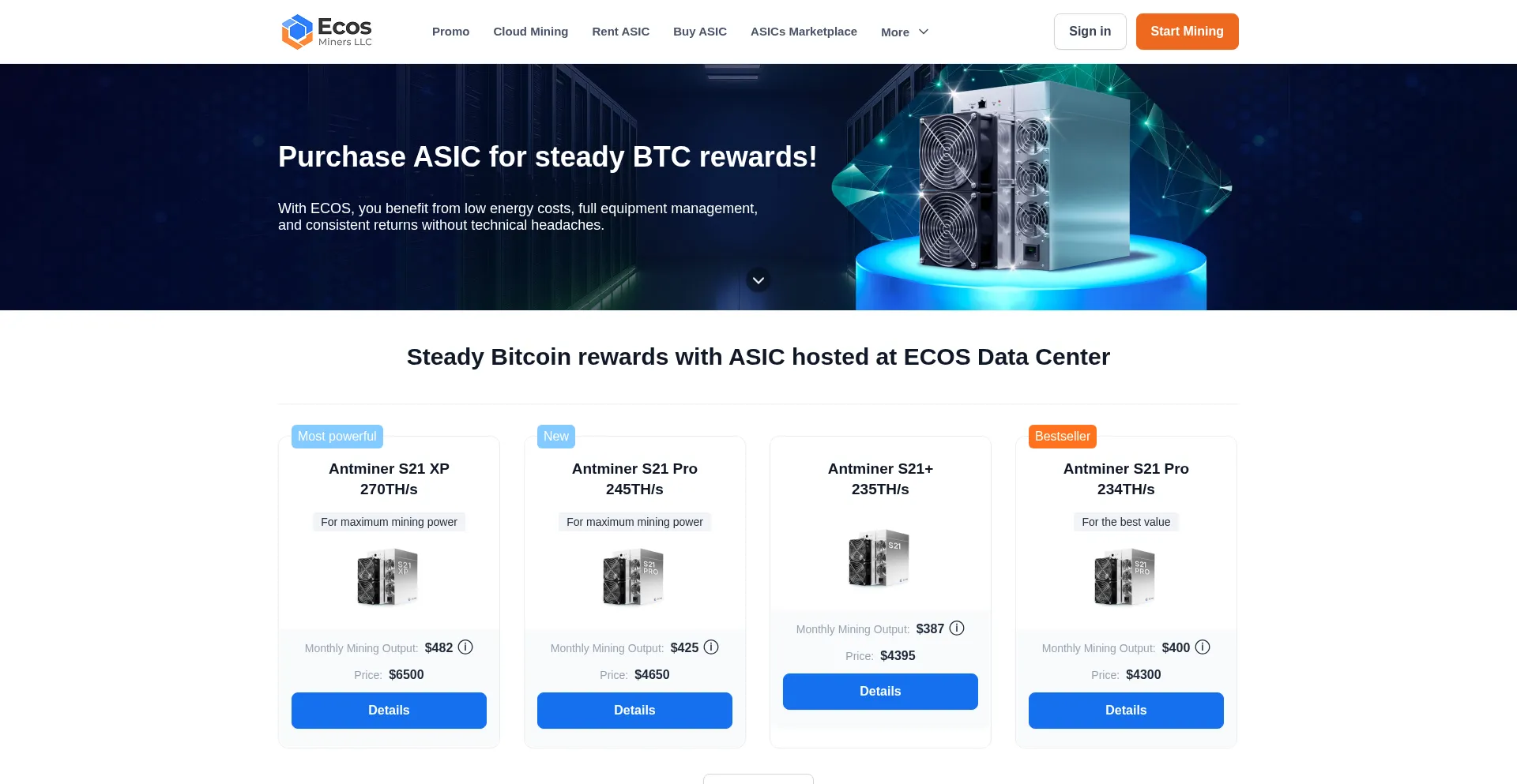 Ecos Mining Farm - Bitcoin mining: mine the BTC cryptocurrency