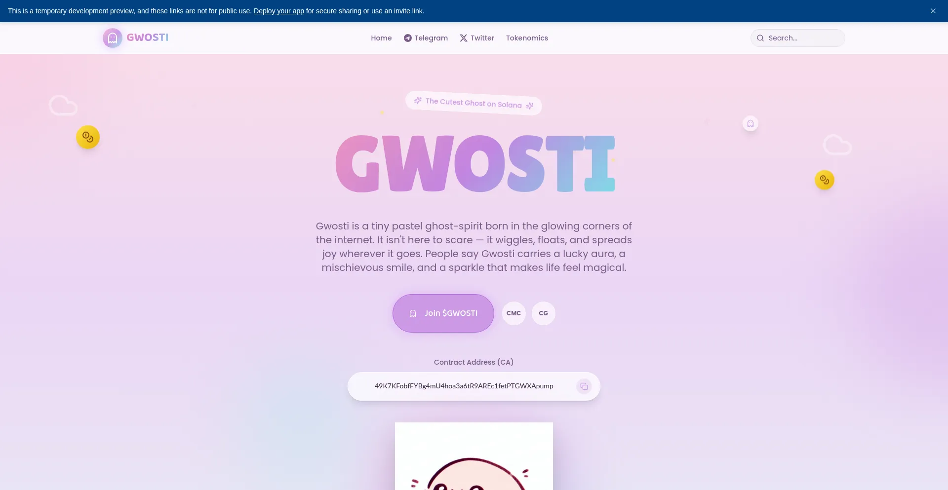 Gwosti is a tiny pastel ghost-spirit born in the glowing corners of the internet. Join the happiest crypto community and spread joy with $GWOSTI.