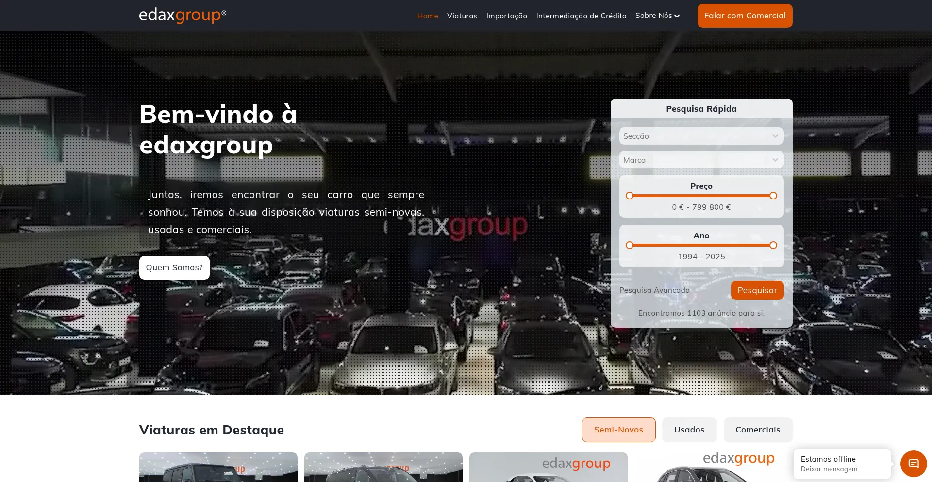 A edaxgroup é uma referência no sector automóvel. Encontre o carro que procura desde novos, usados, semi-novos e comerciais.