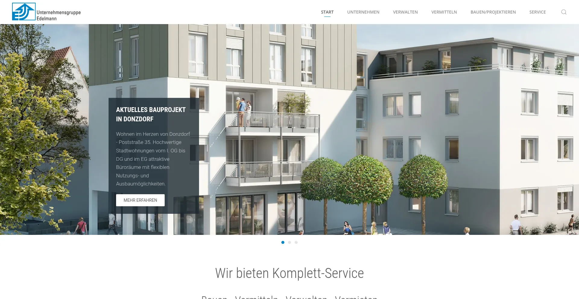 Unternehmensgruppe Edelmann in Göppingen. Wir bieten Komplett-Service: Bauen · Vermitteln · Verwalten · Vermieten