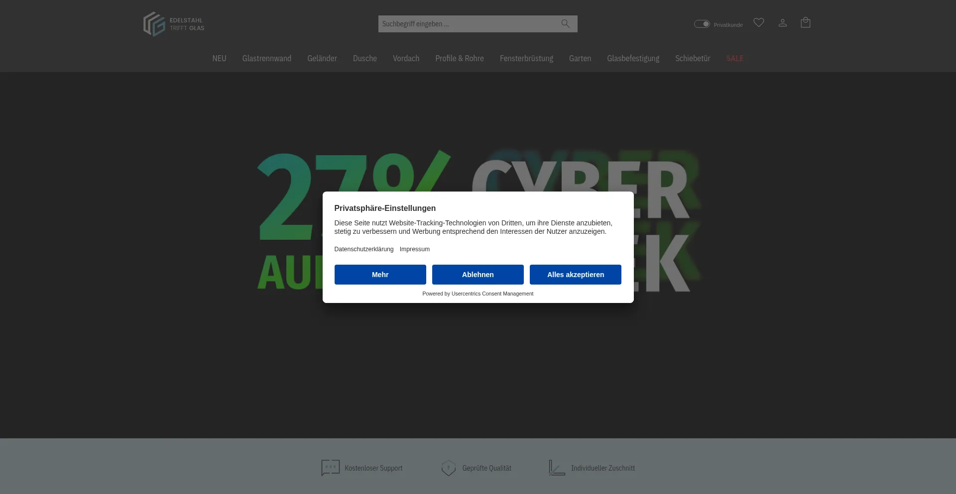 Edelstahl trifft Glas - ETG - Beschläge, Klemmprofile & Befestigungssysteme aus Edelstahl für Glastrennwände ✓ Brüstungen ✓ Duschen ✓ Vordächer & mehr
