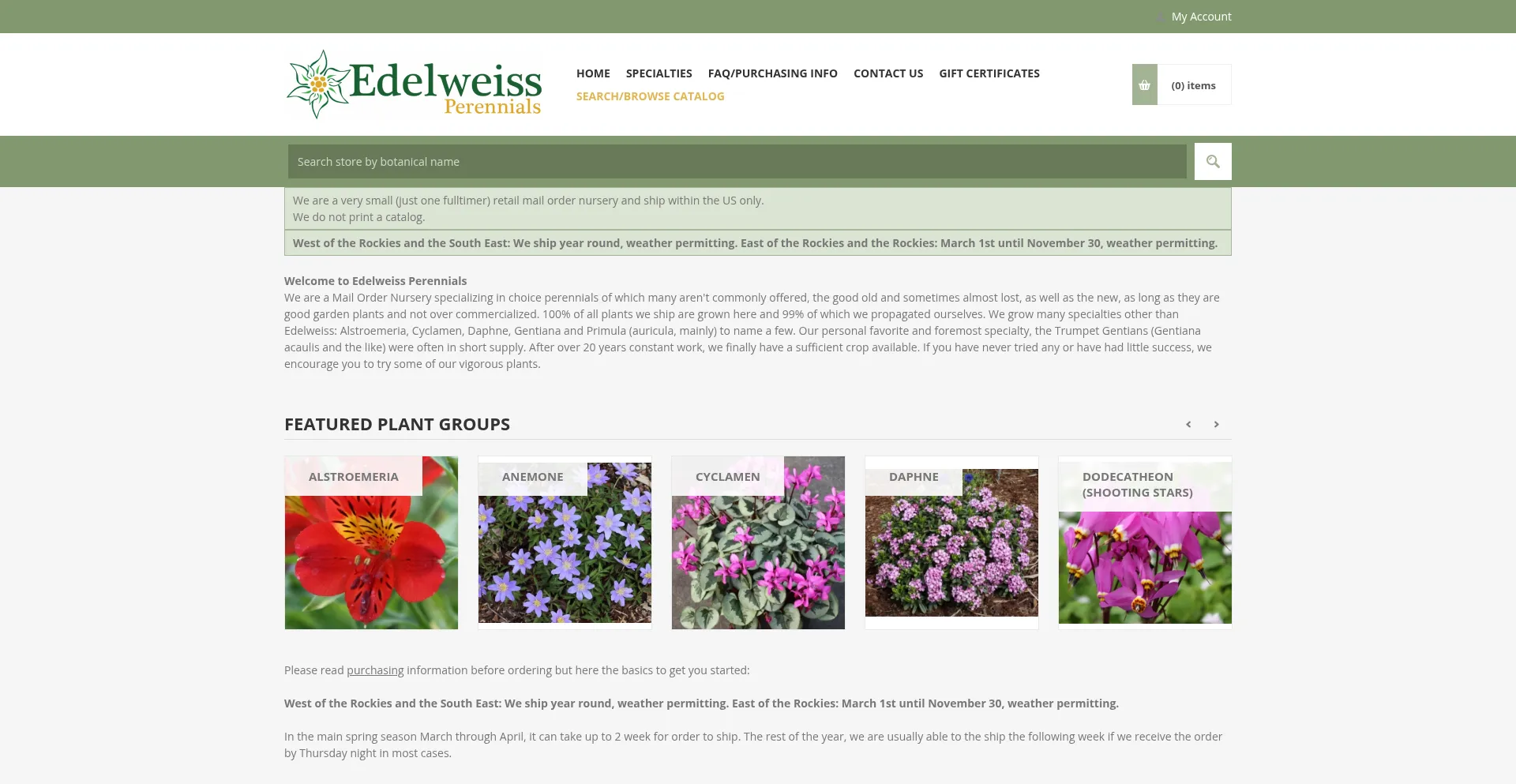 分析表明 edelweissperennials.com 作为电子商务平台运营,促进商品或服务的在线交易。该网站实现了购物车功能、支付处理系统和产品目录功能,这些是商业零售运营的典型特征。