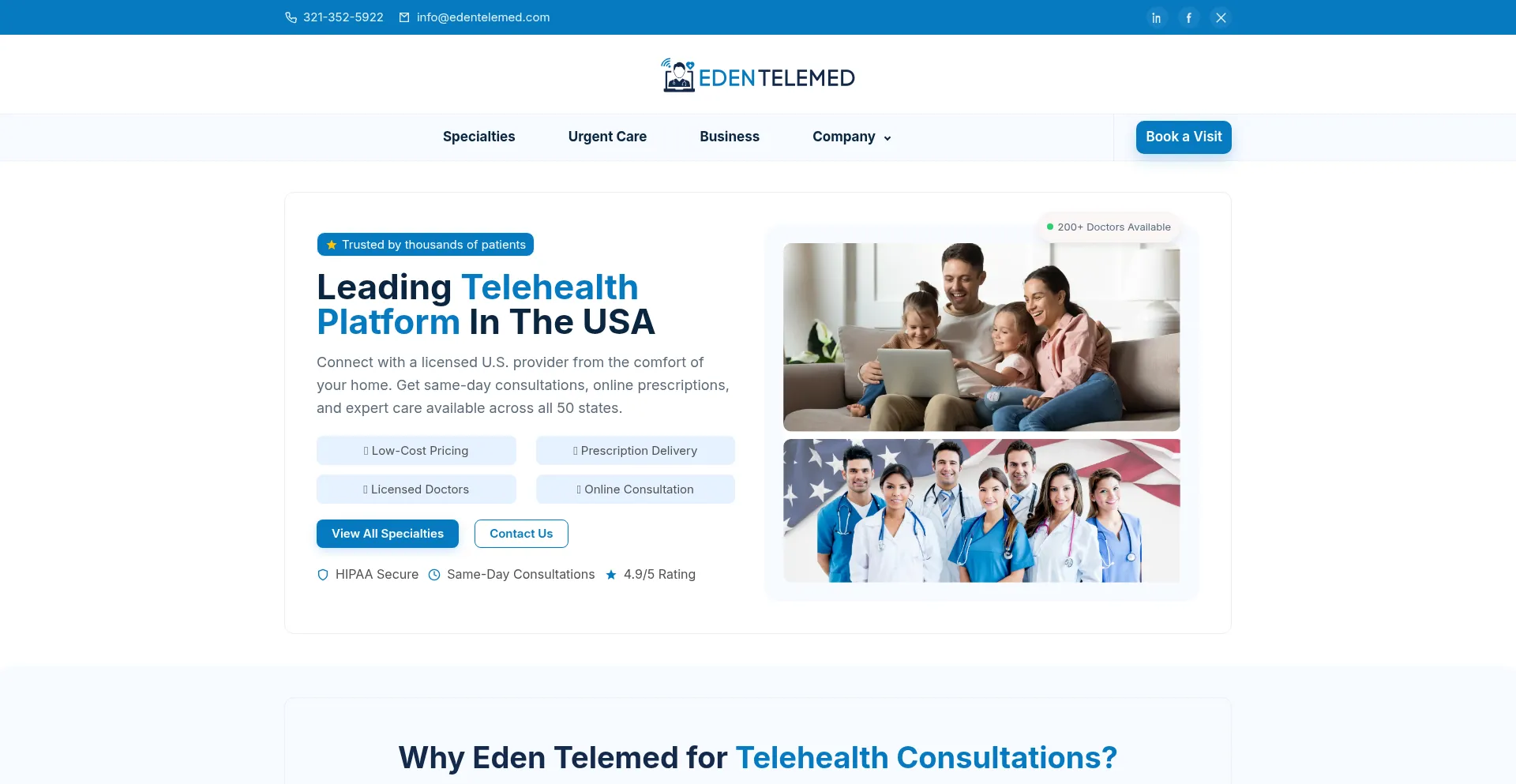 USA Telehealth | Telemedicine | Online Doctors | Eden Telemed