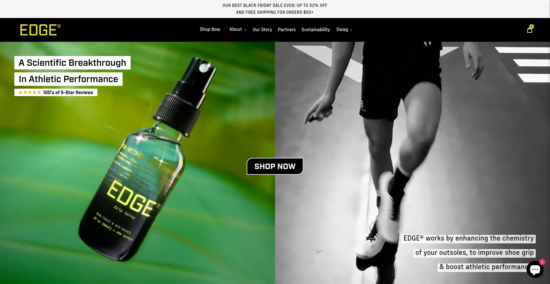 Spray your shoe soles with EDGE® for a lab proven 25%+ traction boost. Fast drying, non-toxic, no stickiness or residue.