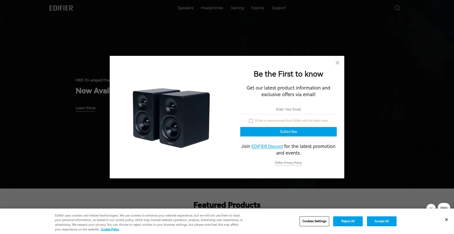 该网站实现符合GDPR或CCPA等隐私法规的cookie同意机制。这表明 edifier.com 遵守数据保护标准并为用户提供对个人数据收集实践的控制。