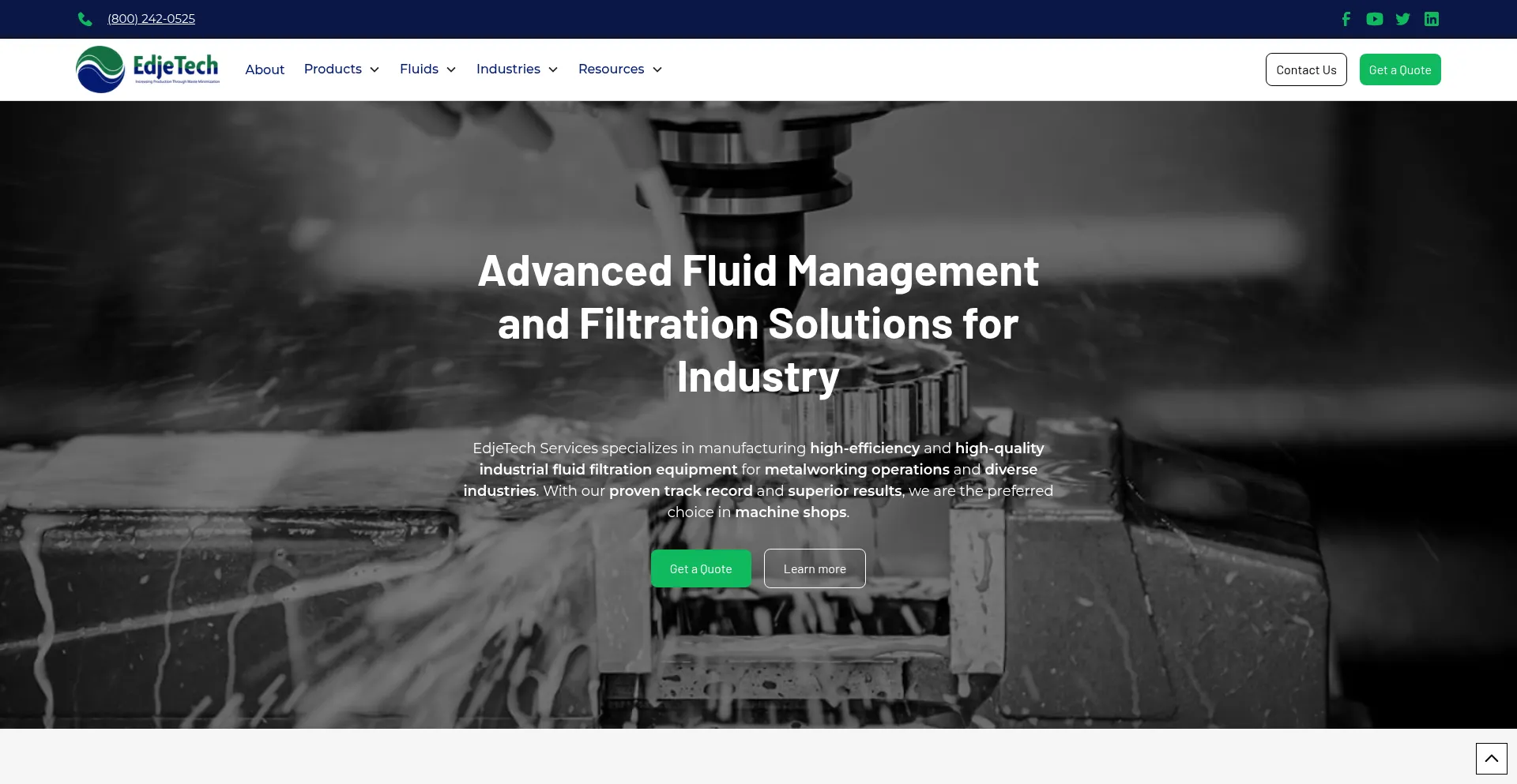 EdjeTech provides industrial machine fluid filtration equipment and high-performance metalworking fluids and cleaners. Call us to learn more about our services.