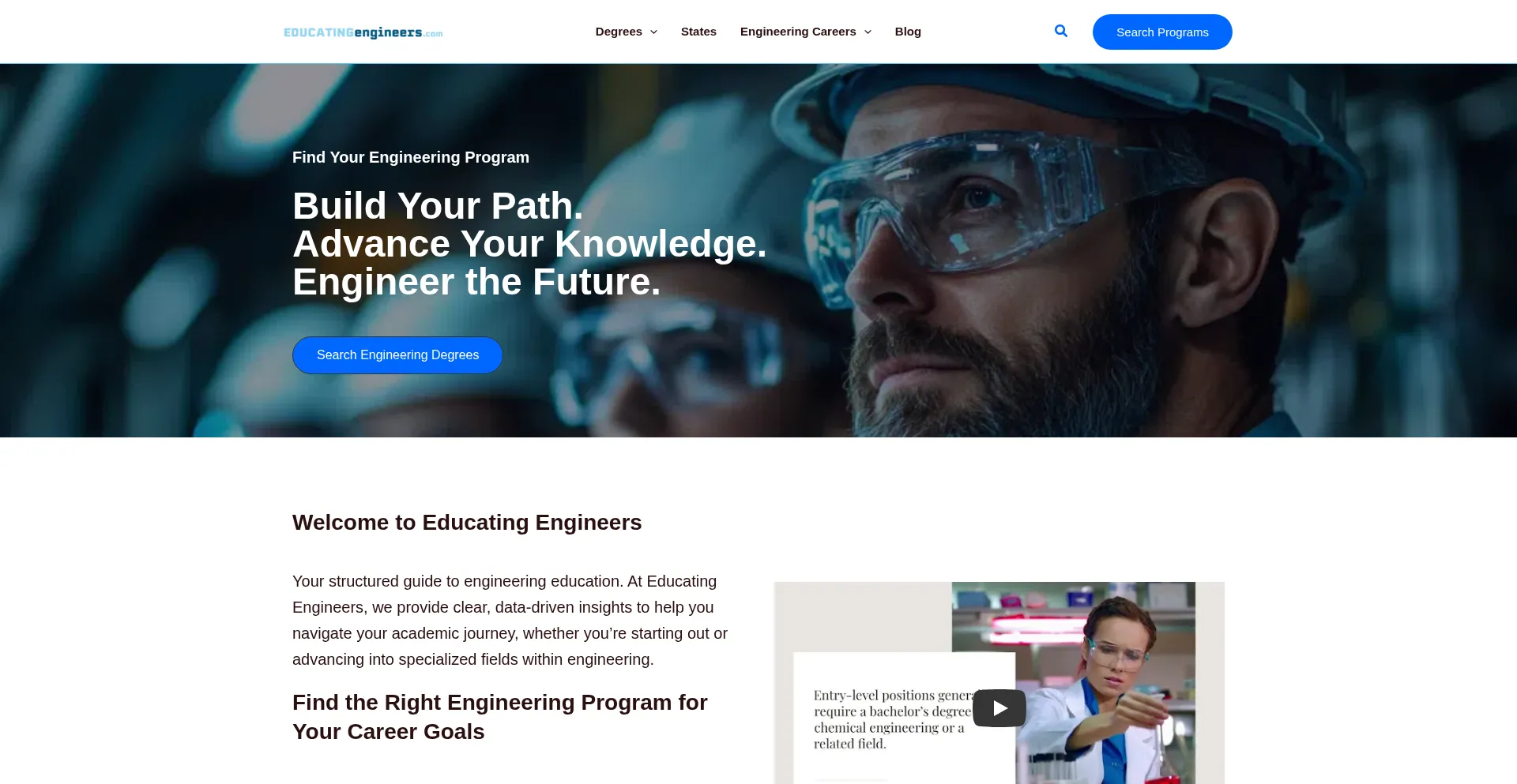 Find Your Engineering Program Build Your Path. Advance Your Knowledge. Engineer the Future. Search Engineering Degrees Welcome to Educating Engineers Your