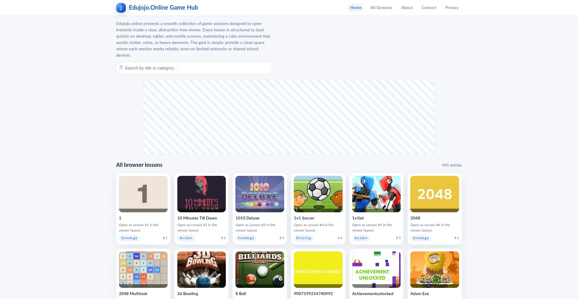 Edujojo.online Browse a clean collection of HTML5 browser lessons and interactive titles that open in a focused viewer layout.