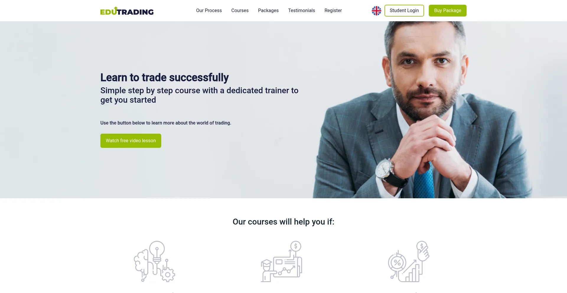 该网站实现数据收集表单,请求个人信息,包括姓名、电子邮件地址、电话号码或其他敏感详细信息。用户应验证 edutrading.com 的合法性并在提交个人数据前查看隐私政策。