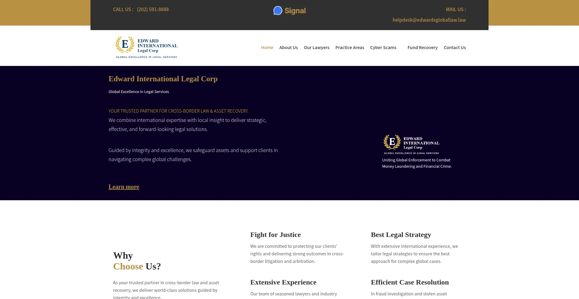 分析显示 edwardsglf.com 显示社交媒体图标或链接,但不连接到合法的社交媒体档案。这种欺骗性做法通常用于创造虚假合法性,代表需要立即谨慎的欺诈意图的重要指标。