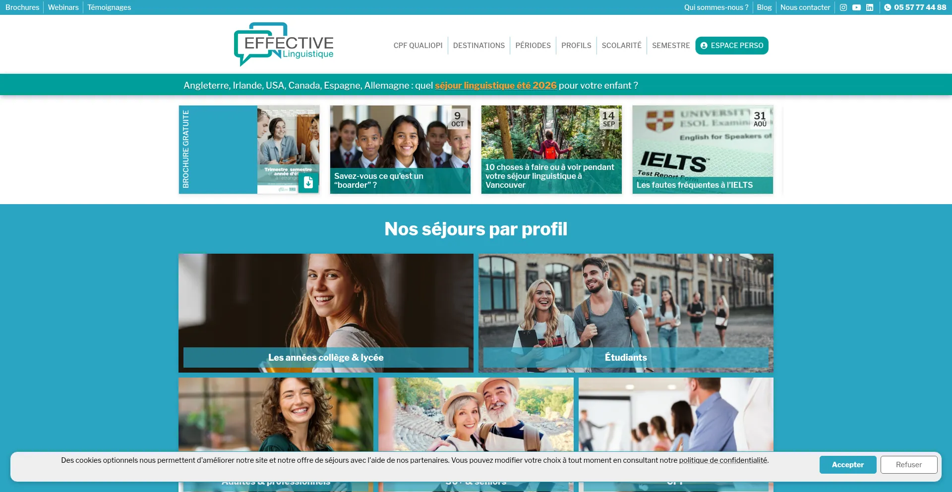 Effective Linguistique c'est le meilleur du séjour linguistique agréé UNOSEL. En Angleterre, au Canada, aux USA et partout dans le monde. En école de langue, chez le profess...