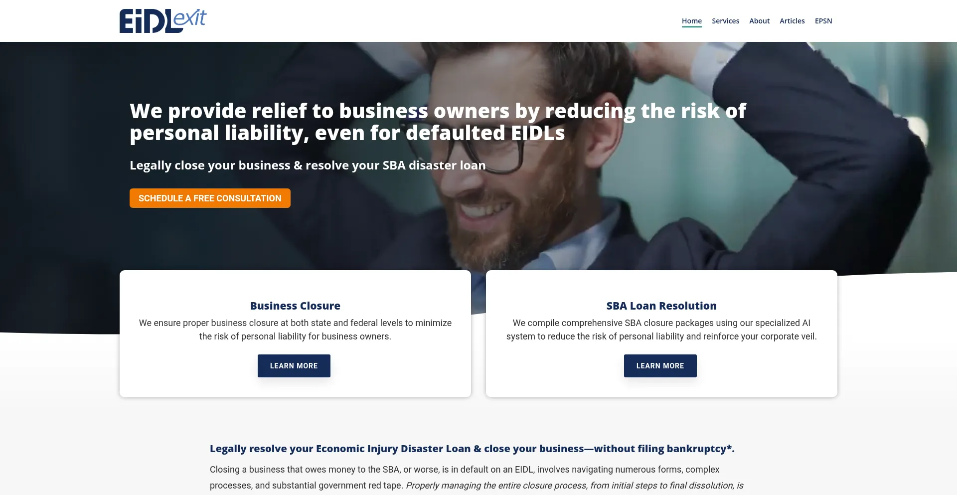 EIDLexit helps business owners resolve their SBA EIDL debt and close their business, without filing bankruptcy. Schedule a free consultation today!