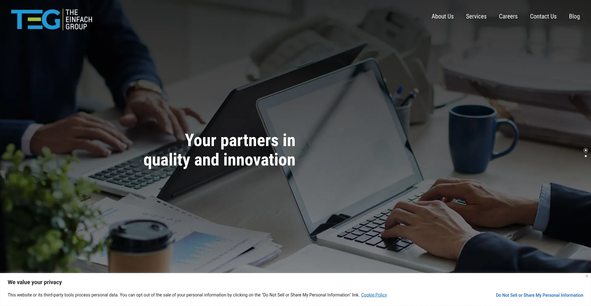 该网站实现符合GDPR或CCPA等隐私法规的cookie同意机制。这表明 einfachgroup.com 遵守数据保护标准并为用户提供对个人数据收集实践的控制。