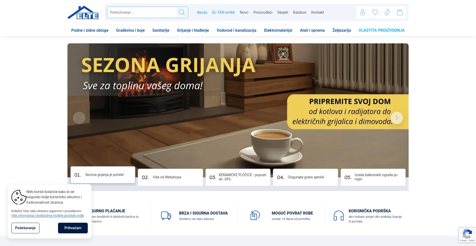 EL-TE trgovina nudi bogat izbor sanitarija za kupaonice, keramike, laminata, kompletnih sustava za grijanje te elektromaterijala i alata.