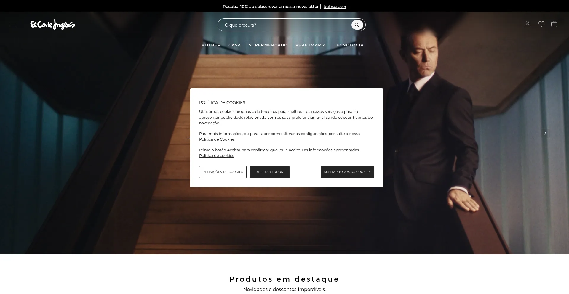 该网站显示来自认可机构的安全认证或信任印章,表明符合安全标准、数据保护协议或行业法规。来自 elcorteingles.pt 的信任印章表明遵守已建立的安全实践和运营透明度。
