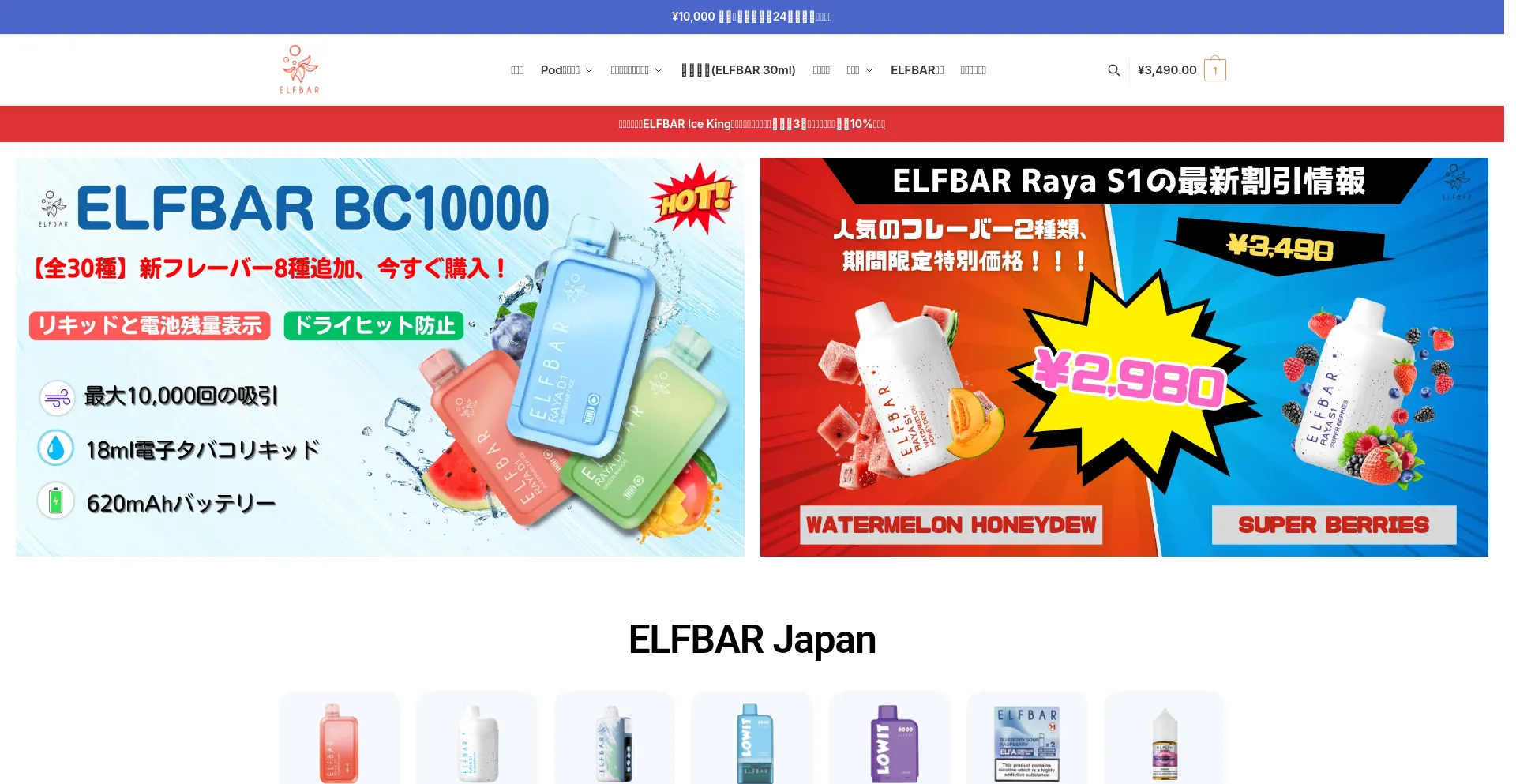 エルフバーの日本最新人気モデル「BC10000」「RAYA S1」「Lowit」「ELFA Pods」「Elfliq」などが好評販売中。豊富なフレーバーと最大15,000�...